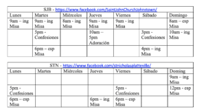 Con respecto a los horarios, a partir del sábado 9 de mayo, el horario de cada parroquia será el siguiente: